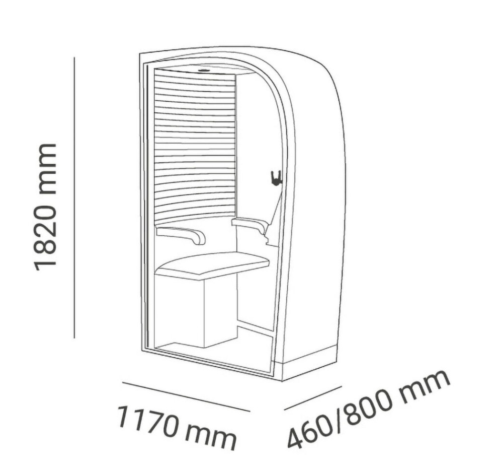 Tyylikäs ja käytännöllinen Silence Phone Box on suunniteltu tarjoamaan rauhallinen työskentely- ja puhelutila avotoimistoihin sekä muihin yhteisiin tiloihin. Käytetty, mutta erittäin siistikuntoinen puhelinkoppi on varustettu sähköpistokkeilla sekä tuulettimella, joka takaa miellyttävän ilmanvaihdon myös pidempien työskentelyhetkien aikana.