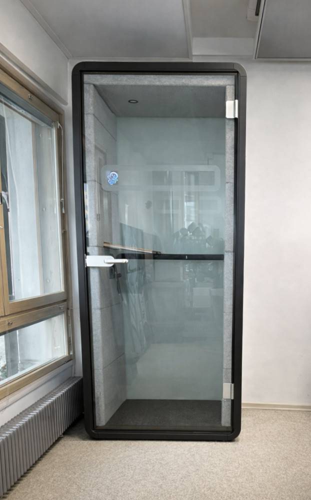 Hush Free XS -puhelinkopissa on A-luokan äänieristys ISO 23351-1:2020 standardin mukaisesti. Kopin täysin uudistetut akustiikkapaneelit eristävät käyttäjän tehokkaasti ulkopuoliselta melulta.
