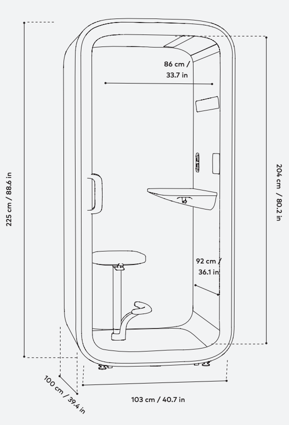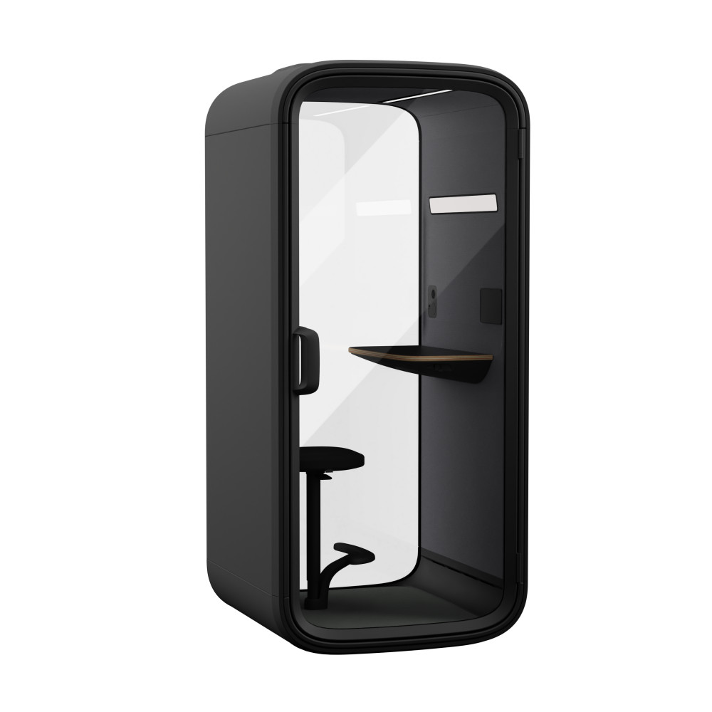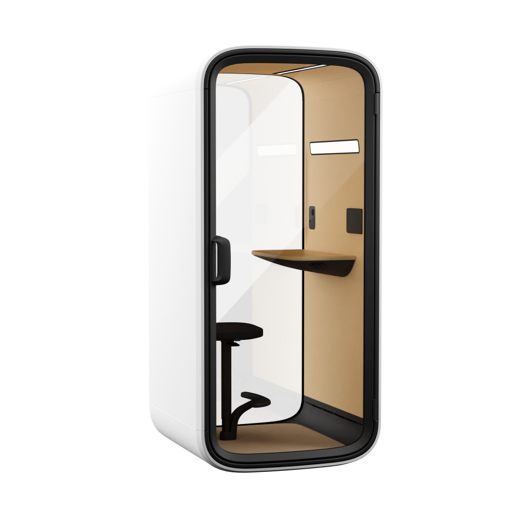 Framery One Compact on yhden henkilön äänieristetty puhelinkoppi, joka toimii hiljaisena työtilana puheluihin, videopalavereihin ja keskittymistä vaativaan työskentelyyn. Se soveltuu erityisesti toimistoihin, joissa tarvitaan tilatehokas ratkaisu rauhallisiin keskusteluihin ilman erillisiä huoneita.