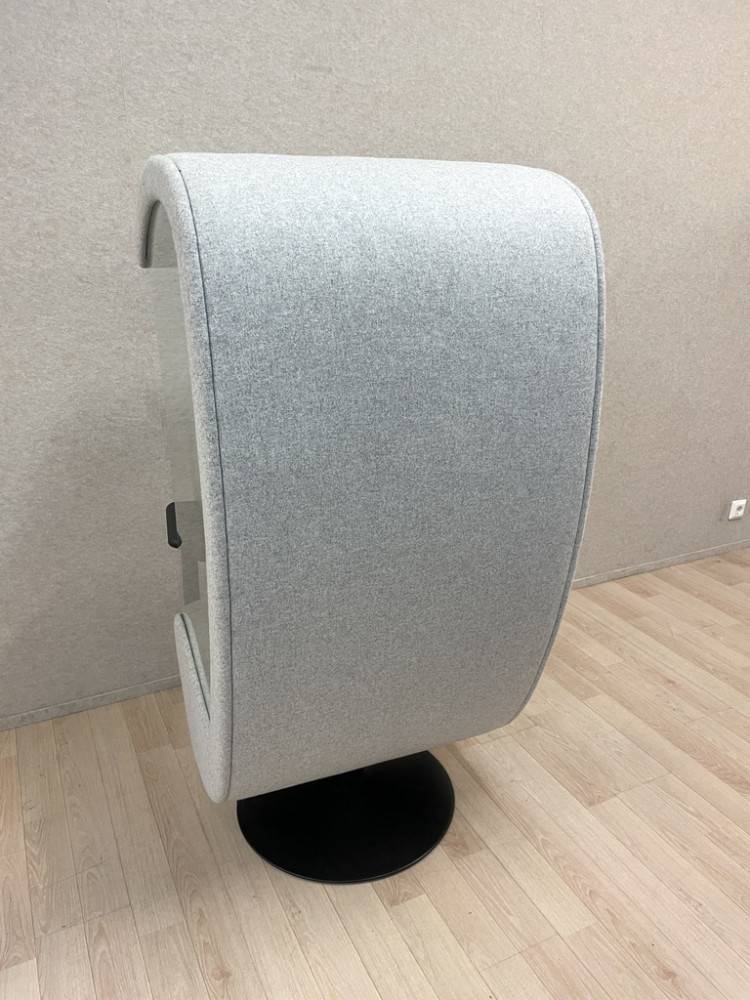 Tyylikäs ja innovatiivinen Evävaara Design Sshhh 5 -tuoli, joka tarjoaa rauhallisen ja suojaisan työskentelytilan avokonttoriin, aulaan tai julkisiin tiloihin. Korkea selkäosa ja kaareva muoto luovat akustisesti miellyttävän “hiljaisen tilan”.